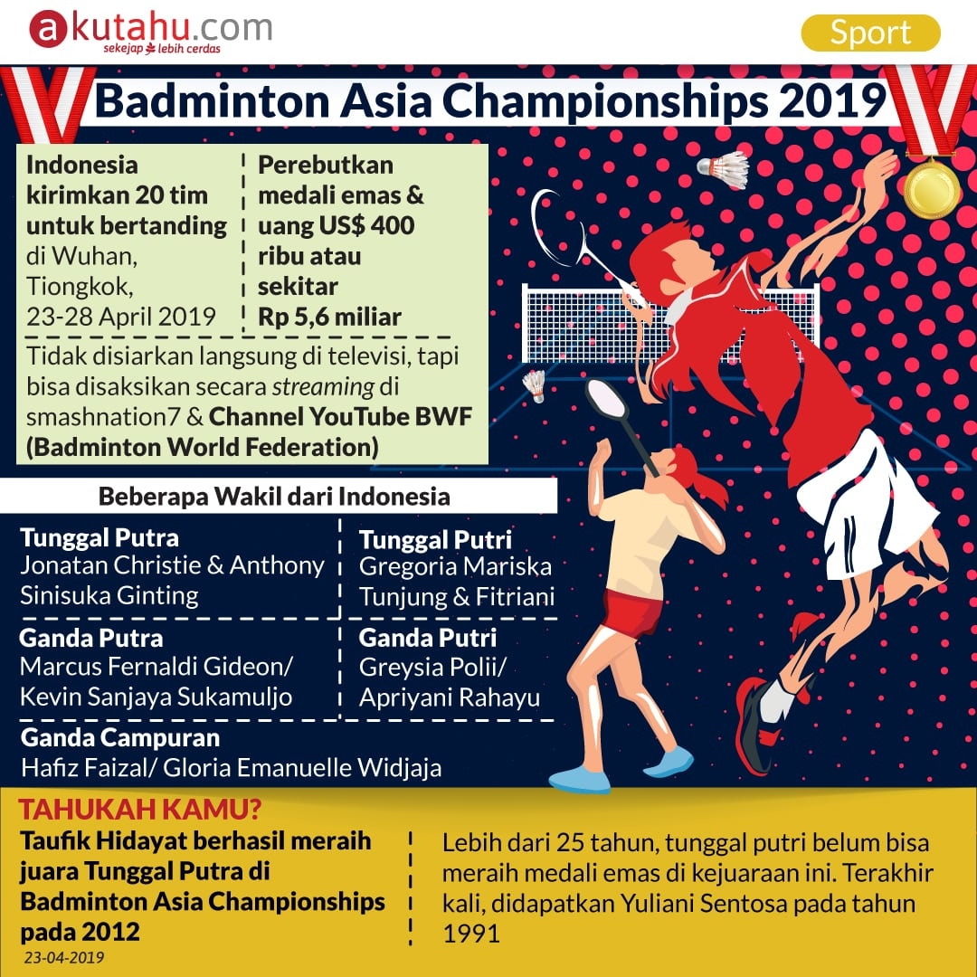 Badminton Asia Championships 2019 atau Kejuaraan Badminton Asia 2019 mulai berlangsung hari ini