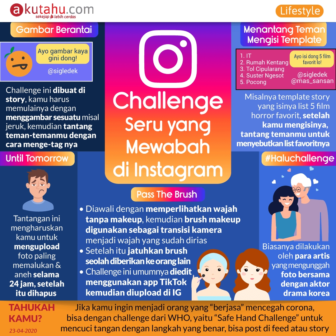 Mimin mau nge-challenge temen-temen untuk komen dibawah kalau udah pernah nyoba berbagai challenge di IG selama #dirumahaja