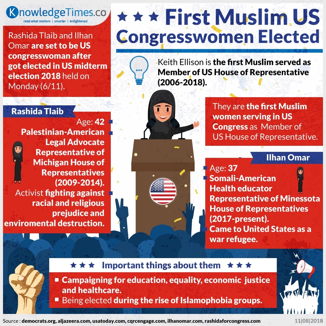 A Breakthough. Rashida Tlaib and Ilhan Omar has been elected as US congreswoman, the first in history, during US midterm election held on Monday (6/11). Campaigning on progressive platform, these two women are elected in tumultous and divisive period in US politics, where intolerance and racism are rising.
