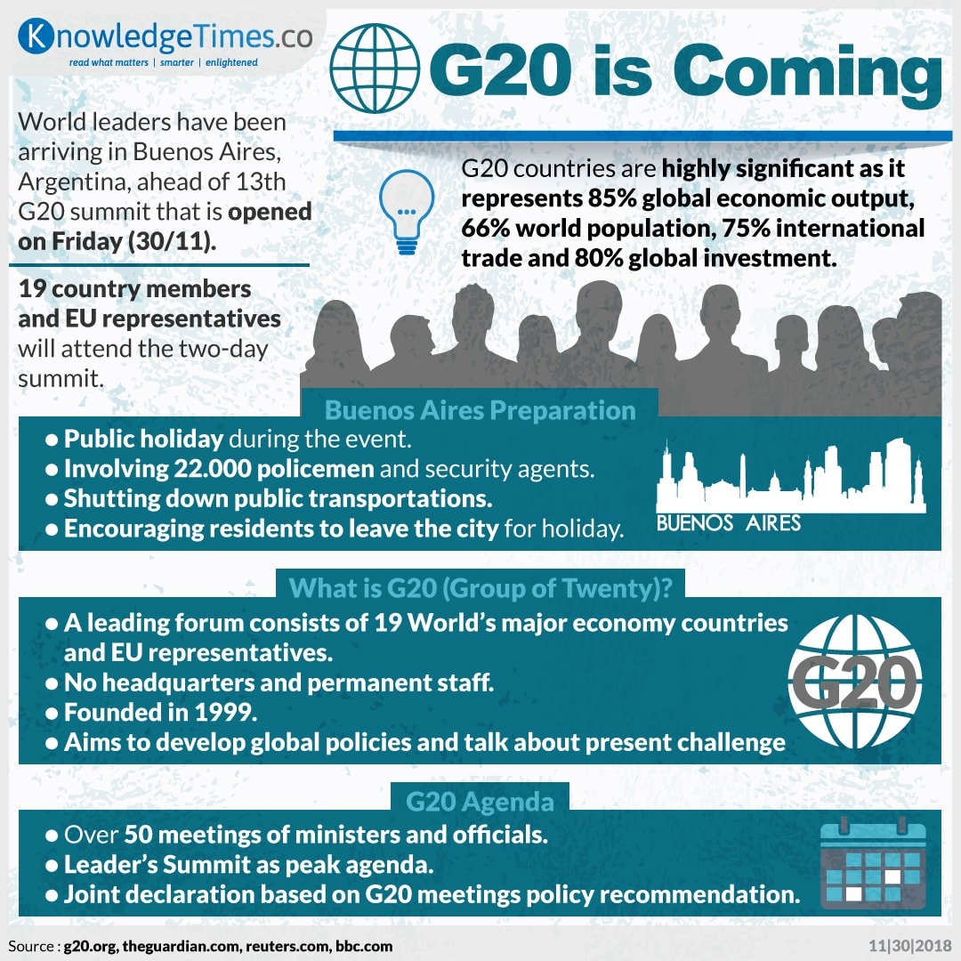 G20 summit is scheduled to be held in Buenos Aires, Argentina, today. This forum is highly significant, as it brights together leaders and government officials from prominent countries to address global issue.