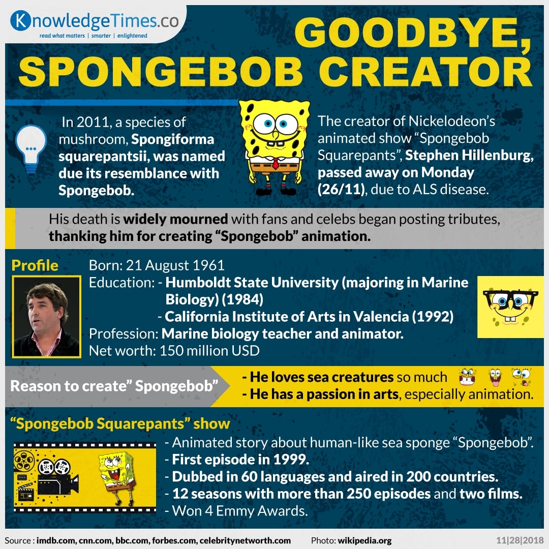 Sad day to us, as the creator of Spongebob Squarepants, Stevel Hillenburg, passed away on Monday. His cartoon has already became a cultural icon, widely shared across the world.